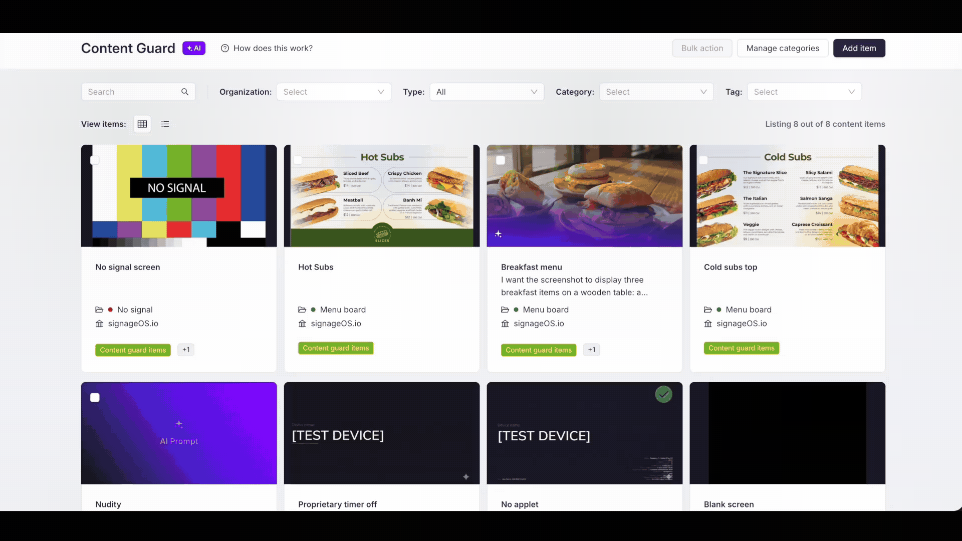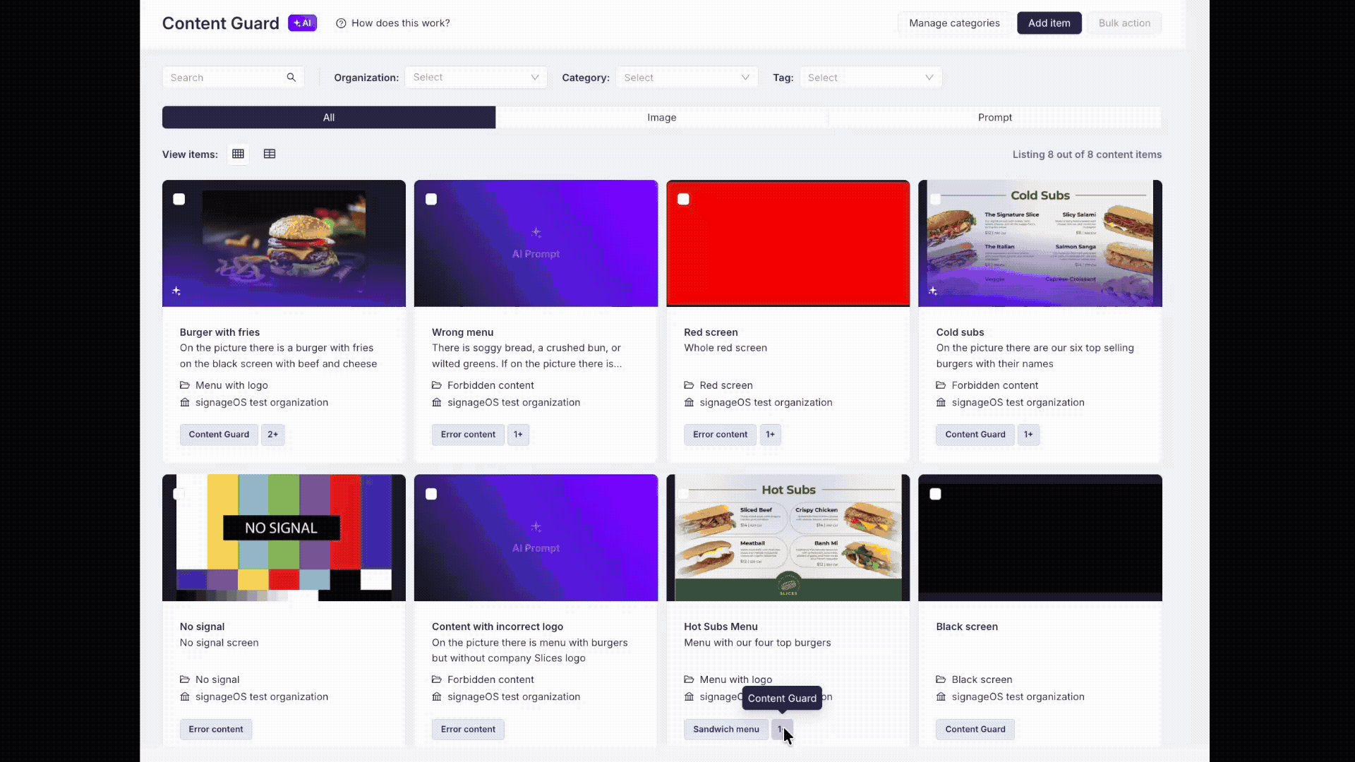 To simplify your start, Content Guard includes pre-defined categories and items that are ready to use out of the box. These are "Read-Only" templates managed by the system: