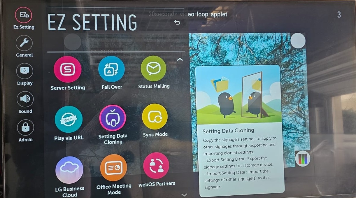 - Source Device: One LG Signage WebOS display.